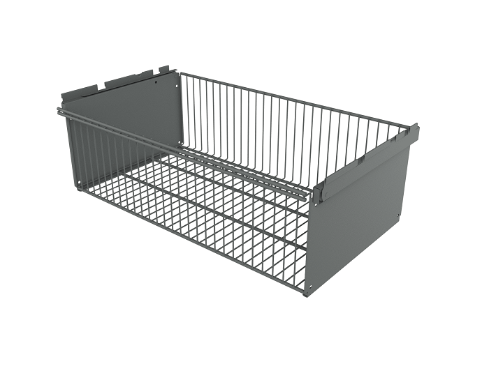 Корзина выдвижная Титан GS предназначена для установки на гардеробную систему. Изготовлена из проволоки, такой же как и сетчатые полки Титан GS. Учитывая крупноячеистую структуру, выдвижные корзины являются отличным вариантом для хранения одежды, поскольку обеспечивается отличная вентиляция вещей. Корзина выдерживает до 35 кг при ее равномерном распределении. Устанавливается на кронштейны полок Титан GS 435 (в комплект не входят). Покрытие: порошково-полимерное, гипоаллергенное и устойчивое к механическому воздействию. Цвет: серебристый.
