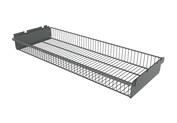 Корзина выдвижная Титан GS предназначена для установки на гардеробную систему. Изготовлена из проволоки, такой же как и сетчатые полки Титан GS. Учитывая крупноячеистую структуру, выдвижные корзины являются отличным вариантом для хранения одежды, поскольку обеспечивается отличная вентиляция вещей. Корзина выдерживает до 35 кг при ее равномерном распределении. Устанавливается на кронштейны полок Титан GS (в комплект не входят). Покрытие: порошково-полимерное, гипоаллергенное и устойчивое к механическому воздействию. Цвет: серебристый.