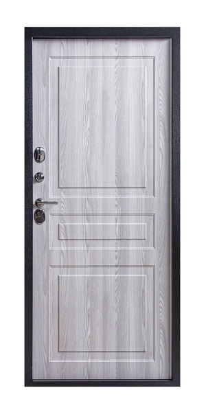 Дверь металлическая Норд серии "Терморазрыв" оптимальное решение для установки в местах, подвергающихся воздействию природных температур. Данная конструкция двери надежно предотвращает промерзание двери при температуре на улице до минус 30 С. Дверь с терморазрывом имеет в районе притвора уникальную 2х камерную конструкцию, состоящую из холодной и теплой зон, которые разграничены между собой двойным слоем уплотнителя, пластиковым элементом в полотне и перфорацией в коробе. Дверь Норд комплектуется двумя сувальдными замками Промет 30.11 и Промет 30.01 четвертого класса взломостойкости, а также алюминиевой дверной ручкой Inspector 93 в цвете хром. Размеры наружные (ВхШхГ) 2104х1089х130 мм, Размеры светового проема (ВхШ) 1913х767 мм, Монтажные размеры короба (ВхШ) 2050х980 мм, Глубина (толщина короба, мм) 130, Толщина полотна 87 мм, 4 контура уплотнения (3 шлегель Q-Ion и 1 Е-образный), Сувальдный замок Промет 30.11, Сувальдный замок Промет 30.01, Ночная задвижка, 3 петли на подшипнике, Наполнение двери - пенополистирол высокой плотности. Применение пенополистирола в качестве внутреннего наполнителя, обеспечивает низкую теплопроводность и высокую звуконепроницаемость. Дверь Норд покрыта износостойкой полимерно-порошковой краской. Цвет внешней стороны двери: антик серебро, внутренняя сторона: фрезированный МДФ панель 6 мм, ривьера айс.